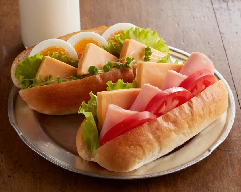 流行のコッペパンサンドにお好みの具材とMEN CHEESEをはさめば、チーズのコクと明太子のピリ辛風味がしっかり味わえるボリュームサンドの出来上がり。