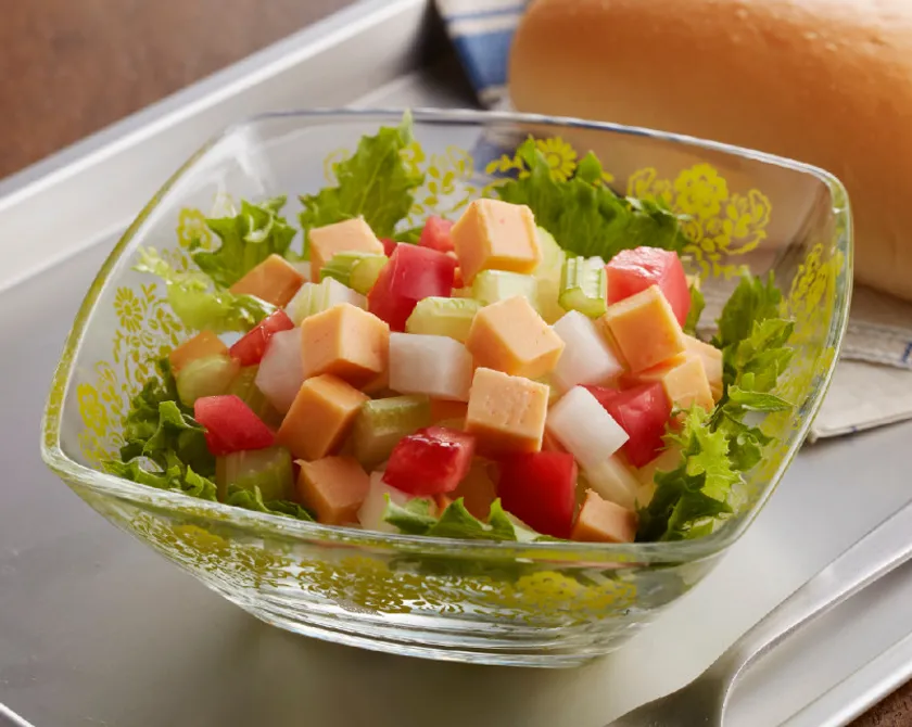 MEN CHEESEとお好みの野菜を一口サイズにダイスカットして盛り付けるだけ。