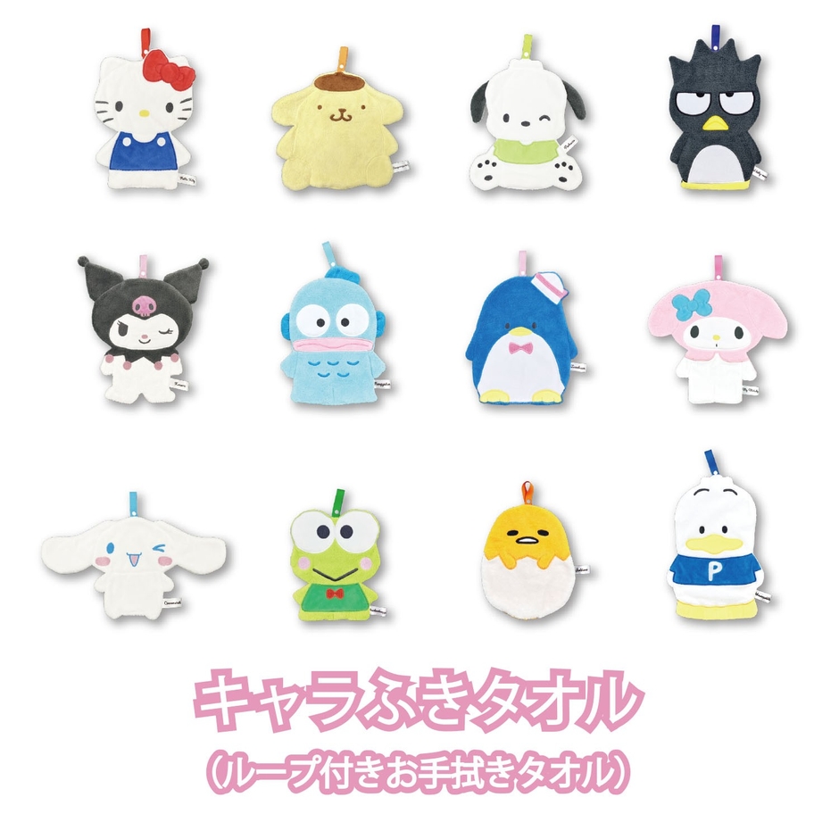 「キャラふきタオル」は、SNSでも話題になったサンリオの人気キャラクターをデザインしたタオルシリーズです。