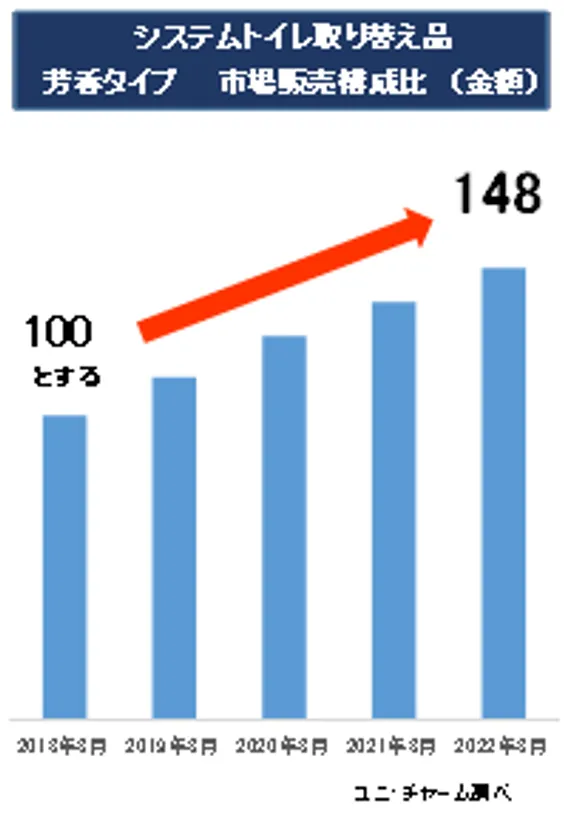 こうした環境の変化から、飼い主様は、愛猫の排泄物のニオイに敏感となり、猫用システムトイレの取り換え品に“芳香タイプ”を選ばれる方が増えています。
