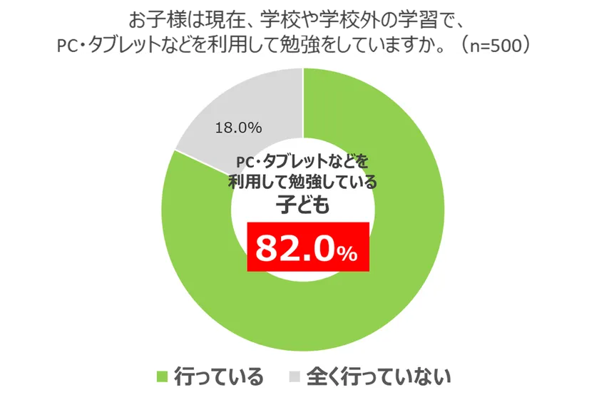 約8割(82.0%)の子どもが、週に1回以上学習にPCやタブレットを使用していることが判明