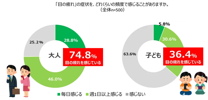 大人の約7割、子どもの約4割が週に1日以上「目に疲れを感じる」と回答
