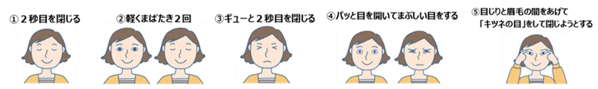 ※2:まばたきテスト…目を開けた状態から時間を計測し、次にまばたきするまでの時間を確認するテスト。10秒以下で目を閉じた場合、涙が蒸発しやすくドライアイの可能性が疑われる。