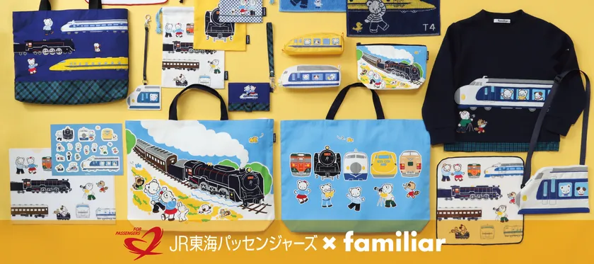 familiar×JR東海パッセンジャーズ 鉄道開業150周年記念 鉄道コラボ第2弾 最速蒸気機関車で知られる「C62形式」や 「ドクターイエロー」など歴代の鉄道車両10種を デザインしたアイテムの販売や体験型イベントを初開催!