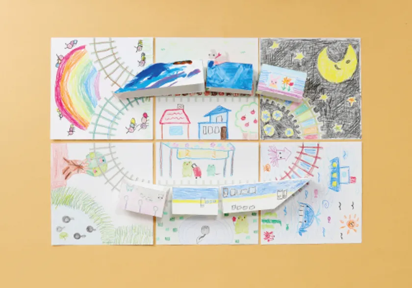 立体的に組み立てられるのりものの模型と線路をつくり、空想ののりものをはしらせよう!自由に色をぬったりアートを描いたりして、空想ののりものをつくってみよう!線路のアートを連結させるとオリジナルの路線も作ることができます。