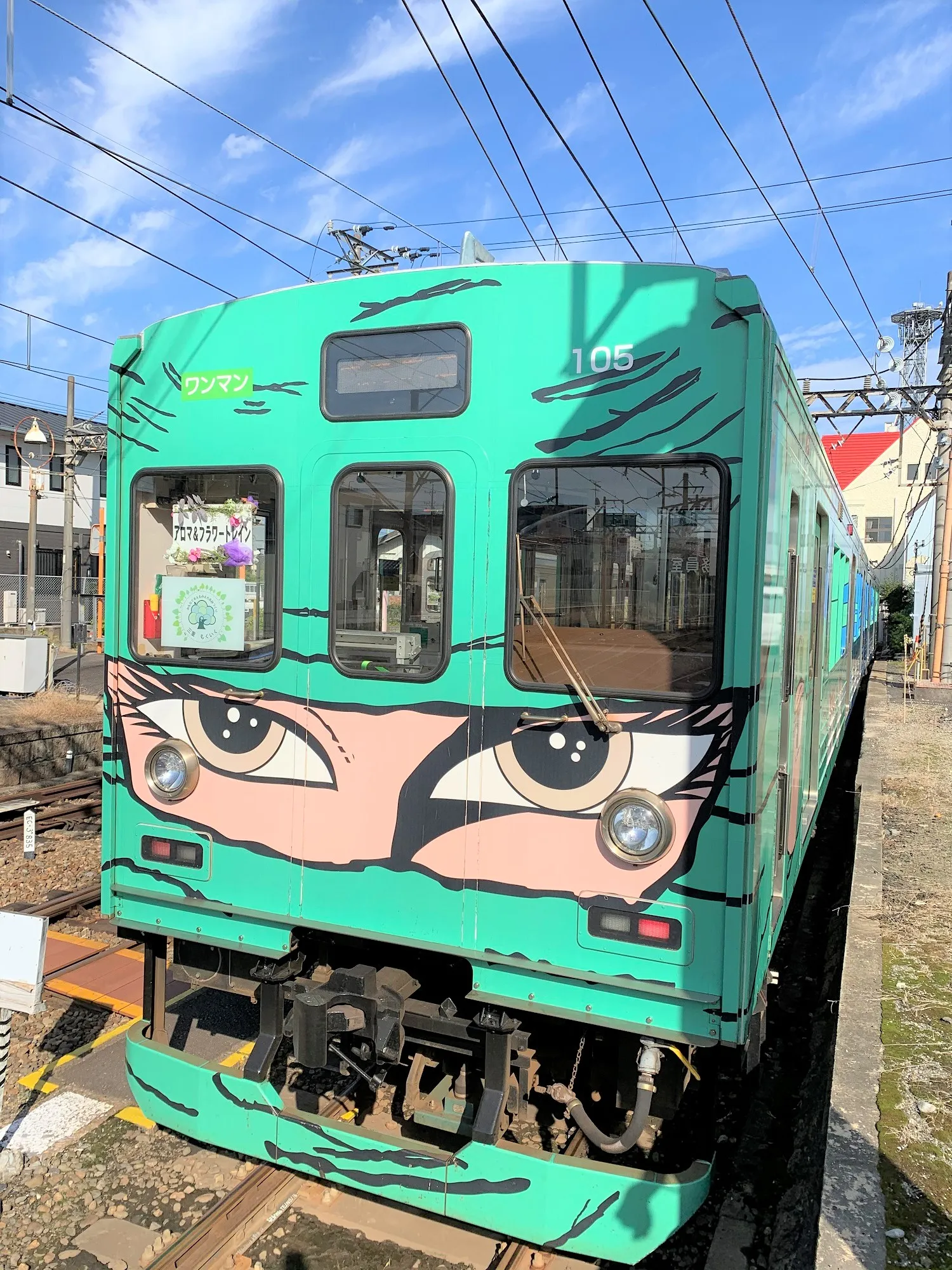 2.飾付車両 ブルーとグリーンの忍者列車(2両編成の内、伊賀上野寄りの1両)