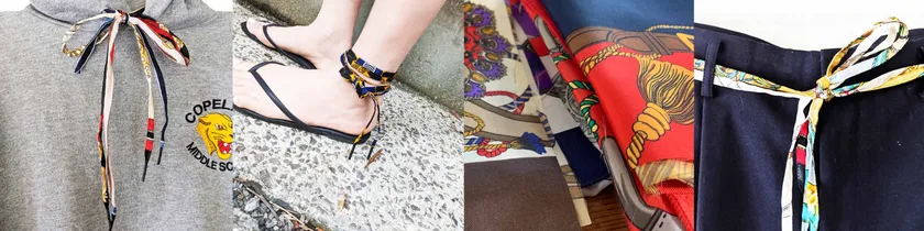 shoeface、OANDEでも使用できなかった古いスカーフなどを更にアップサイクルしています。
