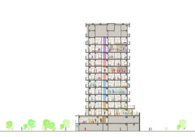これまで高齢者向けの賃貸住宅として運用されていた3~7階部分をシェア型賃貸住宅にリノベーションしています。