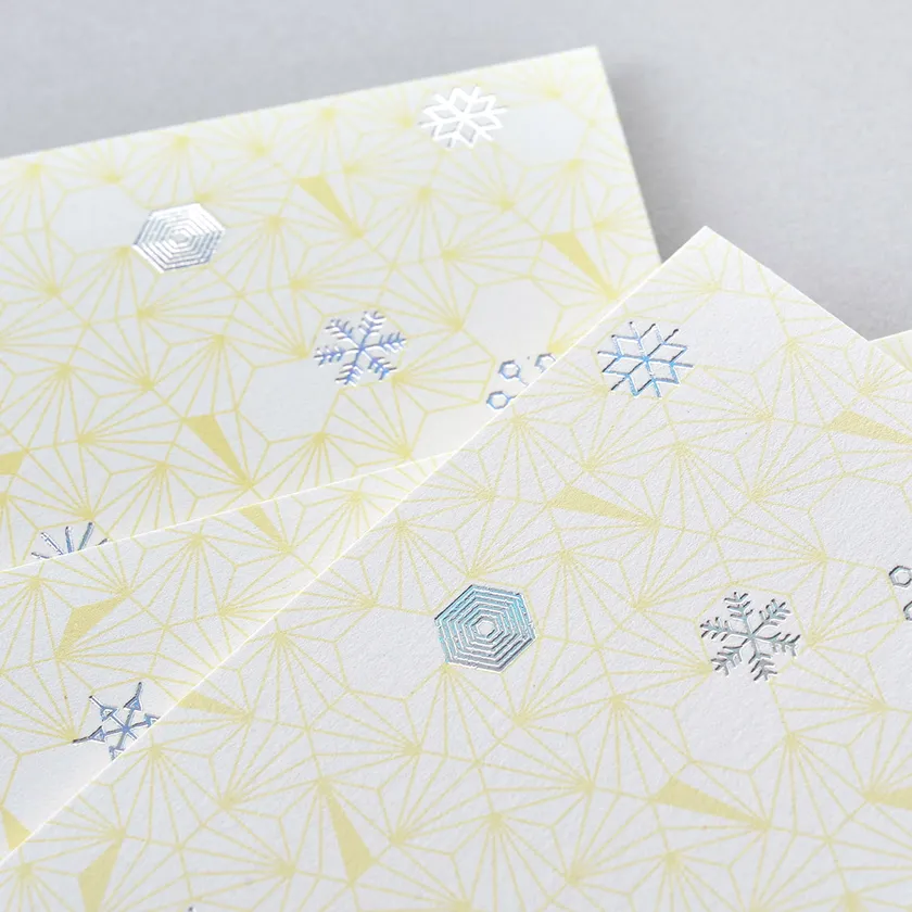 デジタル印刷ではなく、あえてアナログの印刷方法で深みがあるカードを提案。文字が凹む活版印刷、光沢のある箔押し加工を施しています。紙素材は、森林認証を得た環境に優しい紙を中心に商品展開。