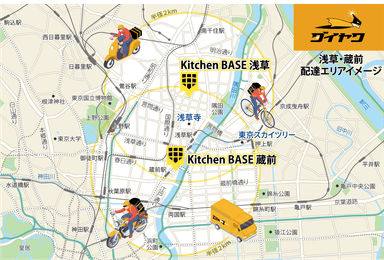 株式会社セルート(代表取締役:高木 惠理)は、シェアリングエコノミー配送アプリ「DIAq(ダイヤク)」が公開しているAPI(アプリケーション・プログラミング・インターフェイス)を通じ、株式会社SENTOEN(本社:東京都千代田区、代表:山口 大介)が展開するクラウドキッチン「KitchenBASE(キッチンベース)」と連携。台東区浅草の2施設から食事をデリバリーするサービスを本格的に開始しました。導入施設は今後、随時拡大する予定です。