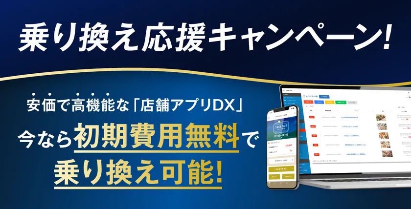 このキャンペーンを活用することで、“初期費用無料”でお得に、高機能で安価な「店舗アプリDX版 raiten」に乗り換えることが可能です。