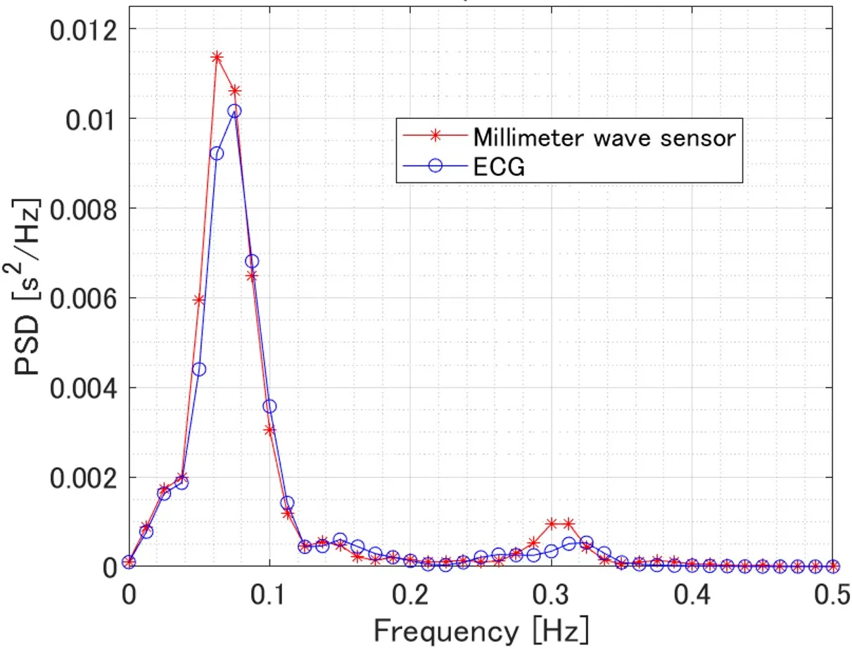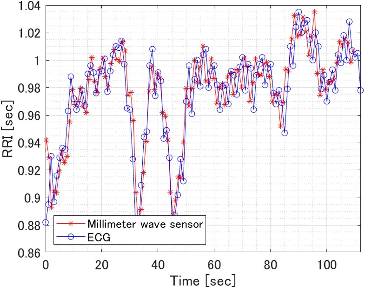 「非接触インテリジェントミリ波センサ」と心電図(ECG)での測定比較