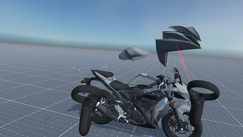 VR空間に表示した3D CADデータを掴んで移動できます。右コントローラのAボタンでオブジェクト移動の取り消し(Undo)が行え、長押しすると初期位置にリセットされます。