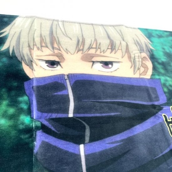 狗巻棘のタオルです。まずご注目していただきたいのがこのプリントのクオリティ。カラーが鮮やかでキャラクターの表情がしっかりとわかる、美麗さ!お部屋に飾りたい一品でもあります。