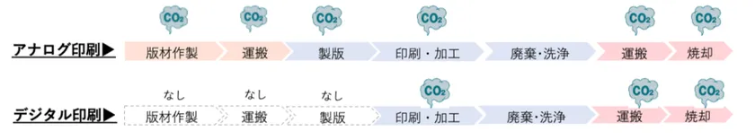 アナログ印刷とデジタル印刷 CO2排出量の違いイメージ図