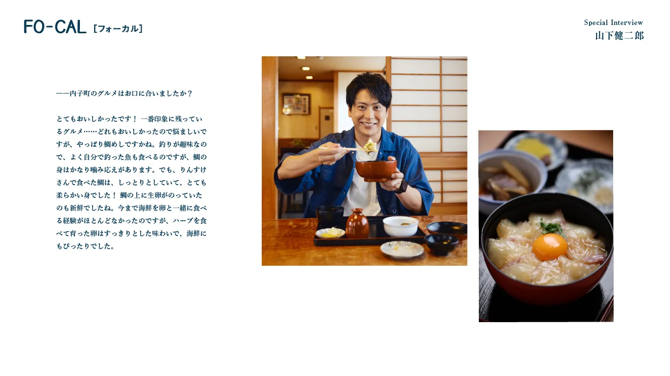 「旅色FO-CAL」愛媛県内子町特集 / スペシャルナビゲーター・山下健二郎さん