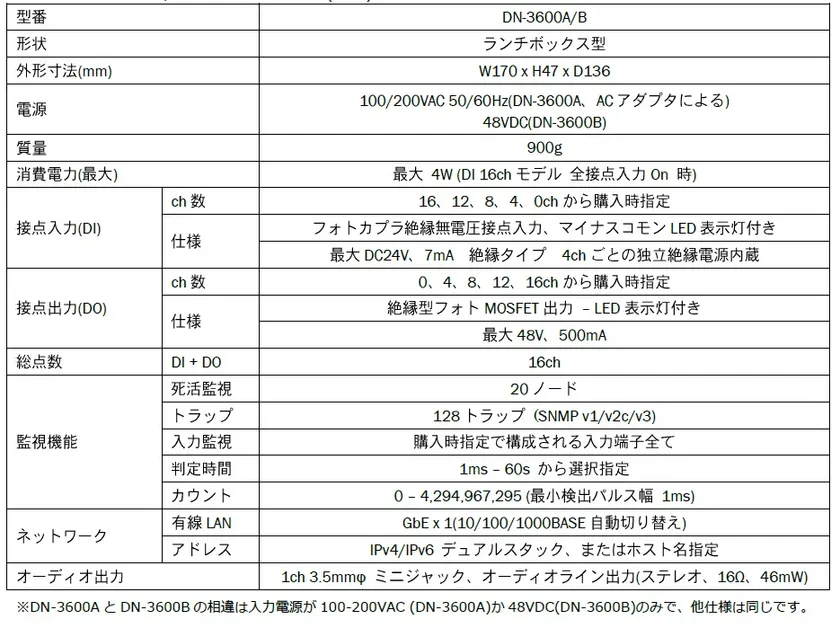 入出力(DIO)監視制御装置 DN-3600A/Bシリーズ 仕様表