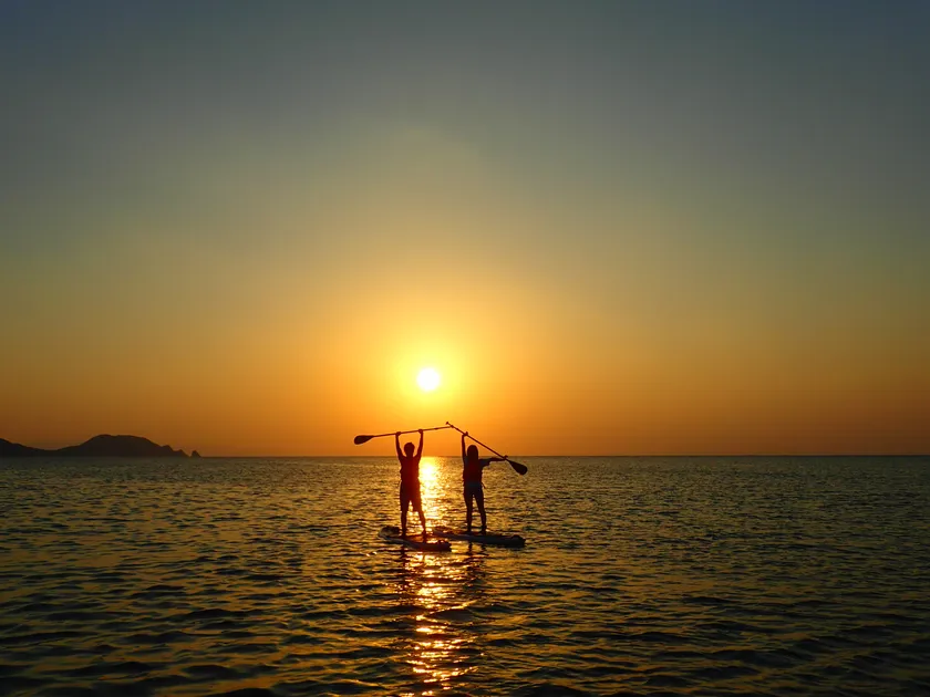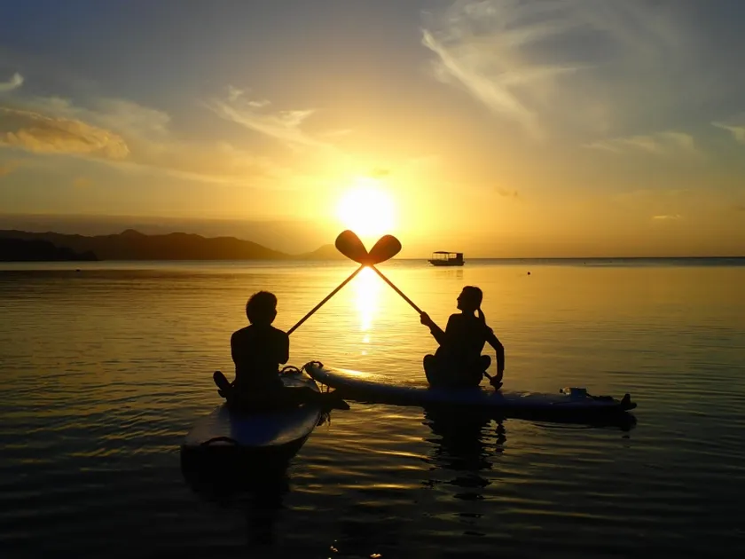 内容 : カヤックやSUPに乗って夕陽を見に行く