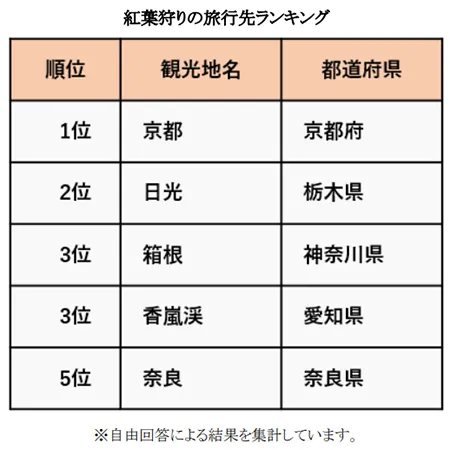 ■紅葉狩りを目的として行ったことのある旅行先ランキング