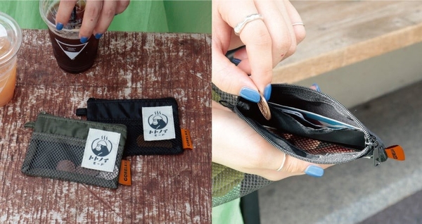 仕切り付きで表のメッシュ側に小銭、裏側のポケットには回数券やカードが入れられる◎