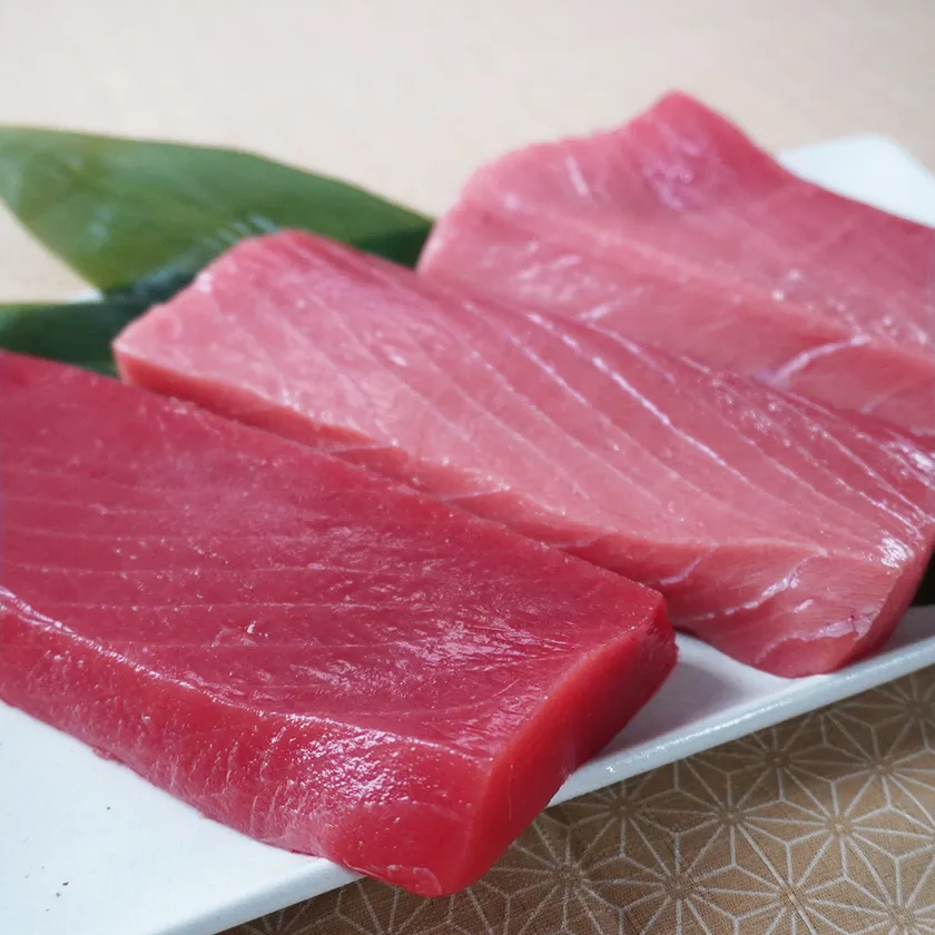 市場から直送、鮮度抜群、極上の養殖生本マグロを、敢えてチルドに拘ってご用意しました。冷凍品には無い、チルドならではのモチモチとした触感の本マグロを、贅沢に中トロ2本、赤身1本のセットでお届けします。付属の練わさびを付けてお召し上がり下さい。