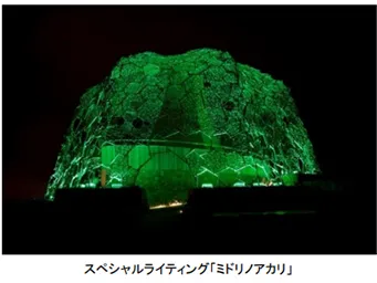 また今秋は、同じく伏見氏が「シダレミュージアム」のイメージカラーである“緑色”に演出した特別なライトアップ「ミドリノアカリ」もお楽しみいただけます。