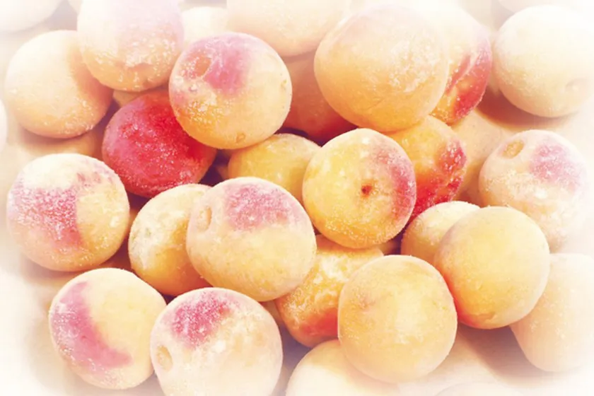 完熟梅を収穫後、-40℃の急速冷凍で鮮度を閉じ込め、さらに氷点下で熟成させるチョーヤ独自の製法。