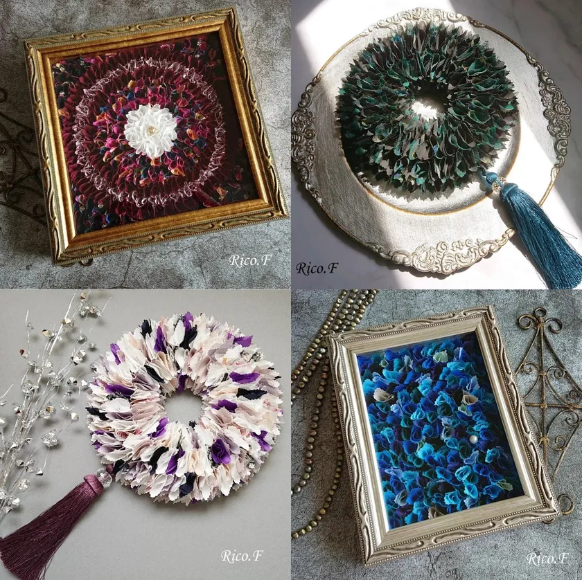 がんを経験し勤務していた会社を退職。セカンドキャリアを模索中、友人主催のアップサイクルをコンセプトにしたイベントでファブリックリースと出会う。魅力に引き込まれ作り続けているうちにアーティスト活動を開始する。活動開始から1年経過、展示会出展やホテルのバイアウトイベントへの出展を果たす。創作活動の全体コンセプトは「貴方と貴方を取り巻く世界が美しいものでありますように」