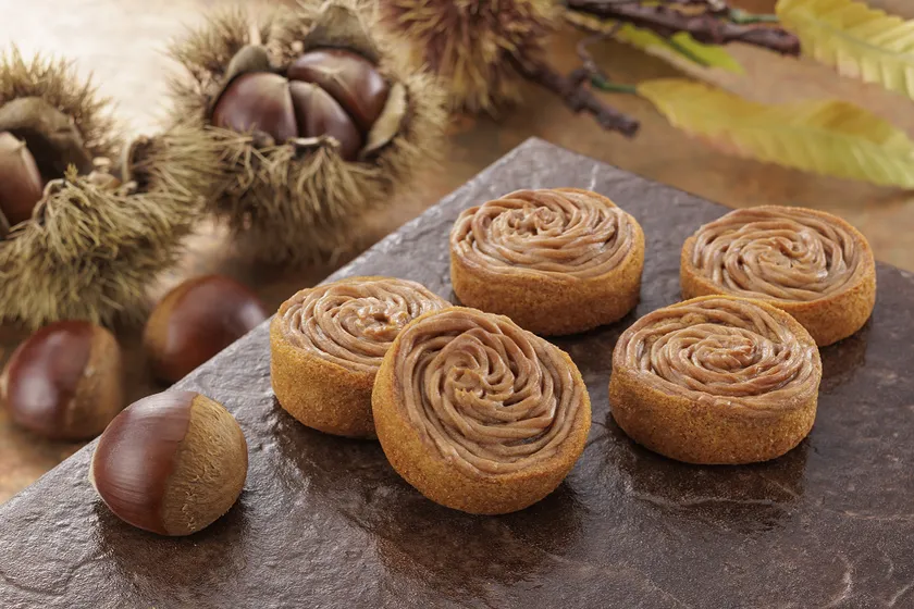 こだわりの生地は栗の香りを引き立てるよう、独自に配合した、ふんわりとした食感をお楽しみいただけます。マロンクリームを絞り、オーブンでじっくりと焼くことで、中にマロンクリームのしっとりなめらかな食感と栗の甘さを閉じ込め、表面からはホクホクの焼き栗の香ばしさを感じられるよう工夫しました。