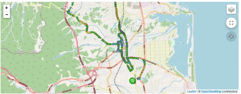 走行履歴のアイコンは時間帯・走行速度で色分け表示にも対応。時間・速度を簡単に識別できるので、効率的に顧客分析ができます。