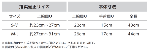 サイズ:S-Mサイズ、M-Lサイズの2サイズ(男女兼用)