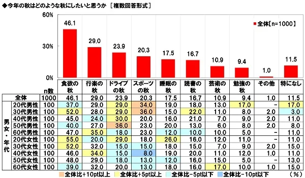■今年の秋はどのような秋にしたい? TOP3は「食欲の秋」「行楽の秋」「ドライブの秋」
