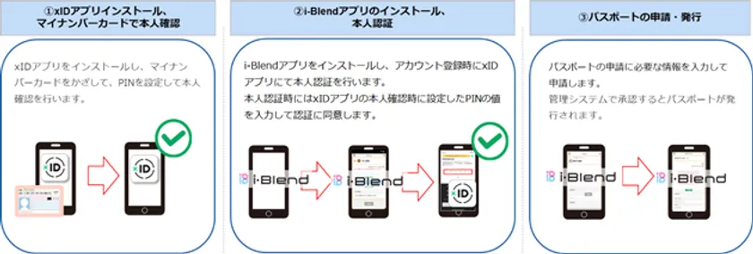 例えば、自治体窓口での住民向け優待カードの申請、発行時において、自治体職員は住民の本人確認作業が必要となる場合がありますが、その際の本人確認のための来庁が住民の負担となっています。住民サービスの向上および行政手続きのオンライン化への対応に向けて、住民向け優待カードの申請業務をはじめとする本人確認作業の軽減、子育て支援等のカード事業の普及、地域経済活性化の取り組み支援のため、オンラインで本人確認する仕組みとしてxIDのサービスを活用したマイナンバーカード認証基盤と、住民が自治体からの優待を受けられるパスポート機能を住民生活総合支援アプリ「i-Blend」(スマートフォンアプリ基盤)に新たに追加し、提供開始します。