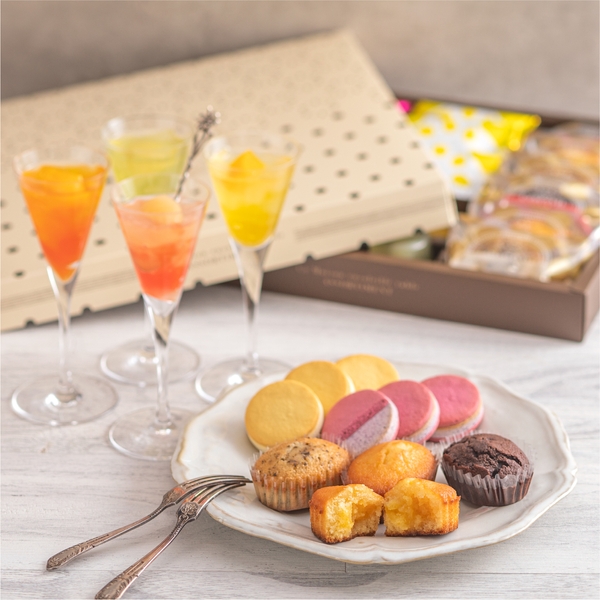 国産フルーツのジュレや、しっとり食感のマドレーヌ、果実を入れた焼きショコラをサンドしたサクサククッキーなど、ラ・メゾン人気の焼き菓子が楽しめる夏限定アソート。