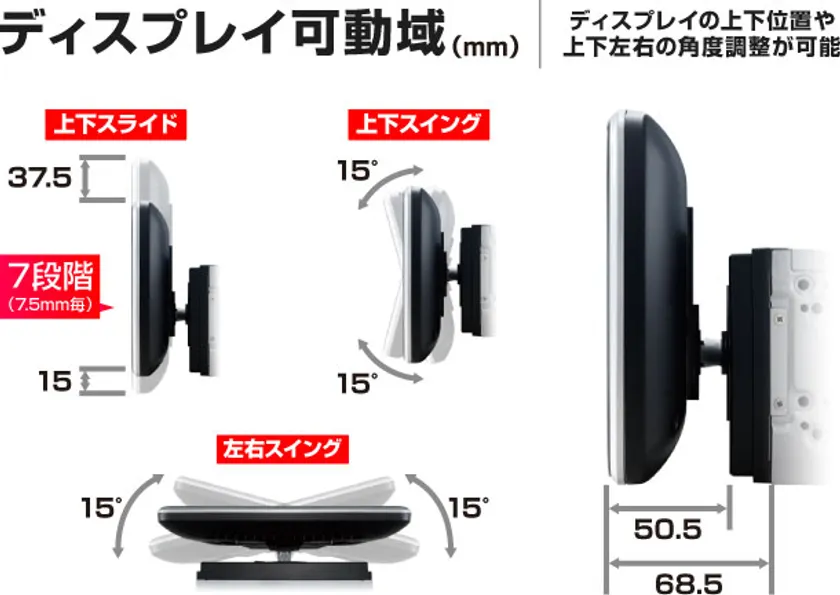 4. 【AMEX-SL02限定】角度調整可能な9インチ・フローティング仕様の大画面モニター
