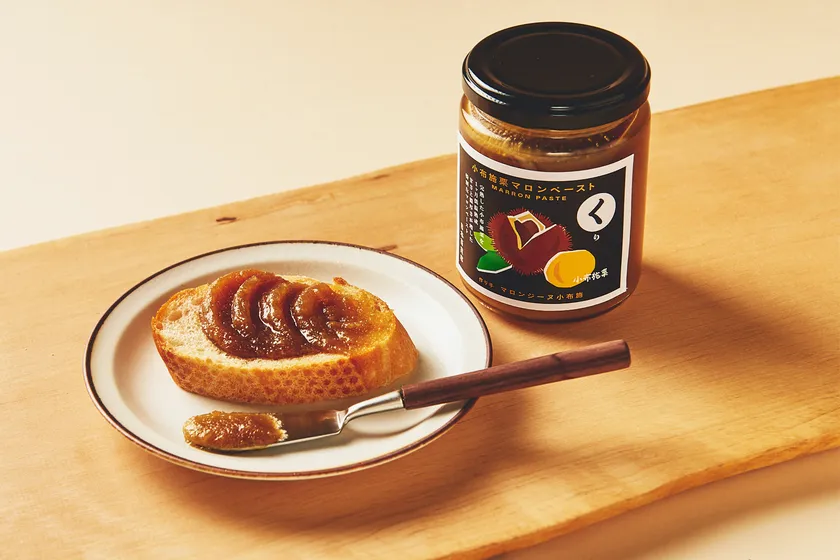 自社農園で採れた小布施栗だけを使った、贅沢な栗のペースト。原料は栗と少しの砂糖のみで、余計なものは一切使用していないので、栗の風味をしっかり味わえます。完熟した栗を1ヶ月低温熟成させて甘みを最大限に引き出し、濃厚な味わいと栗の風味が口いっぱいに広がります。