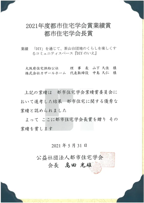 2021年度都市住宅学会賞業績賞 受賞