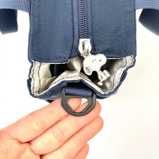 注目していただきたいのが、このメインファスナー部分!スヌーピーのチャームが付いているんです。シンプルな中にもしっかりと可愛いが散りばめられているのが、このバッグ人気の秘密です♪バッグのマチも約9cmあり、人気のポケトルを入れてピクニックなんかいかがでしょうか♡?