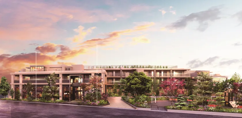・茅ヶ崎海岸まで徒歩8分、第一種低層住居専用地域内の歴史ある約8,000m2の敷地に建設される4棟構成の低層マンション。2層吹抜のエントランスやラウンジ、富士山を望める屋上庭園などの共用部が好評を得た