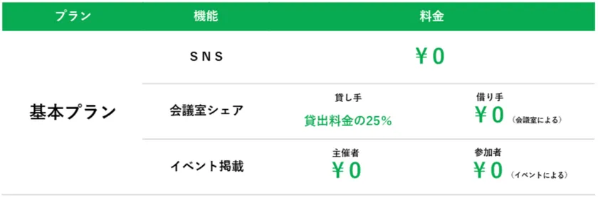 自社の会議室を掲載し、空いている時間に貸出しすることができます。貸出し金額設定は自由。無料でも貸出しいただけます。