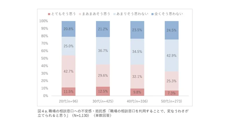 (図4a.)職場の相談窓口への不安感・抵抗感 「職場の相談窓口を利用することで、変なうわさが立てられると思う」(N=1,130) (単数回答)