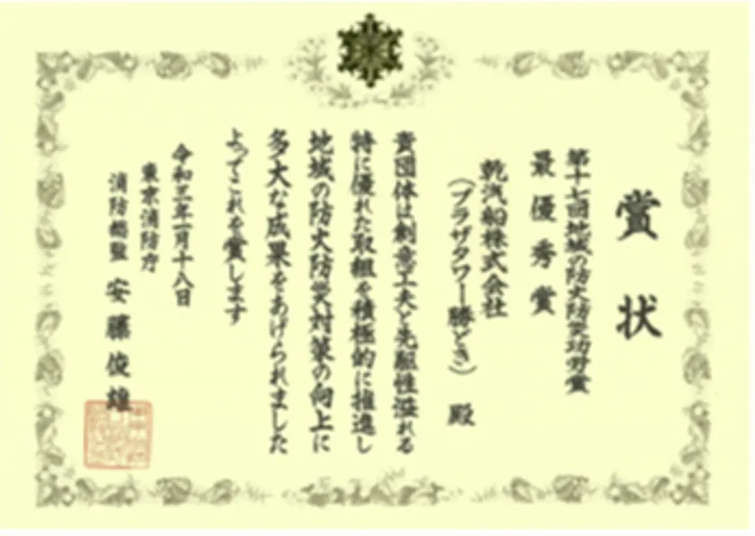 東日本大震災から10年が経過し防災意識も希薄になるなか、当マンションでは防災意識の向上と防災を一つのコンテンツに、マンション内のコミュニティー醸成に取り組んでおります。2018年より始めた本防災イベントは東京消防庁で行われる「第17回 地域の防火防災功労賞」の選考において、最優秀賞(東京消防庁消防総監賞)を受賞しました。
