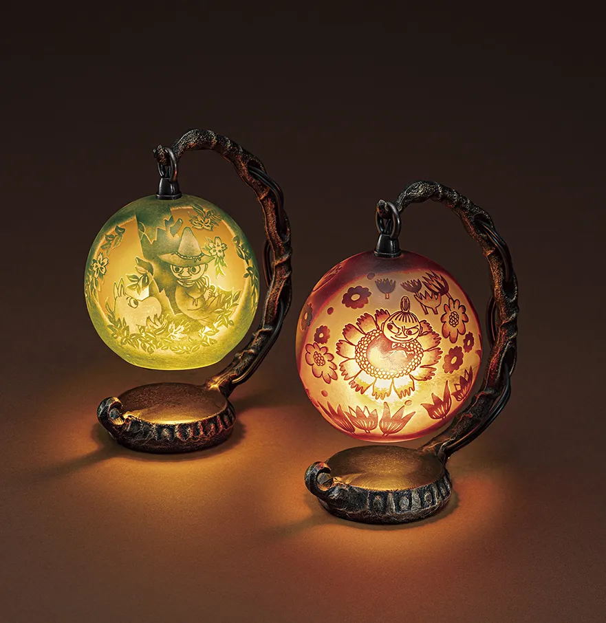 ムーミン谷から抜け出したかのような情景にやさしい光を灯す ハンドメイドの彫刻ガラスランプ新発売!