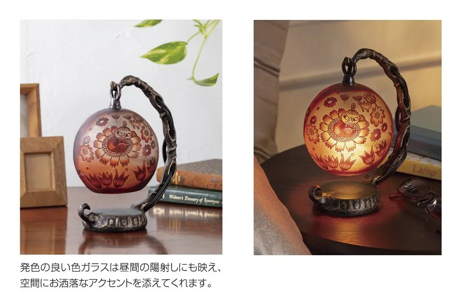 昼間は陽射しに映えるお洒落なインテリアとして、夜は豊かな灯りが広がる光のアート作品として、ムーミンの物語そのままに、心安らぐやさしさをいつもそばに。