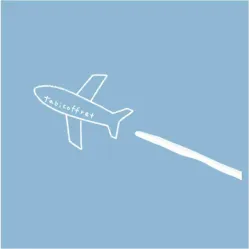 tabicoffretの文字を入れたシンプルな飛行機が、真っ白な飛行機雲を出しながら飛びます。