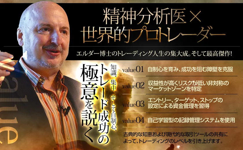 現代のマーケットへの体系的なアプローチは、初心者、熟練者を問わず、あらゆるトレーダーから高く評価され、米国アナリスト協会MTAのテクニカルアナリスト資格CMT指定図書にも選定されています。著者は、世界的プロトレーダーでありながら精神分析医の顔を持つアレキサンダー・エルダー博士。トレーディングの世界で心理的なアプローチを試みたパイオニアであり、メンタルの重要性を含めた4つのMがトレーディングの成功には不可欠と提唱します。