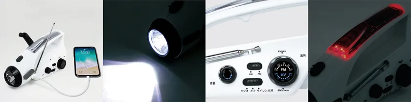 〔充電・LEDライト・ラジオ・サイレンの4つの機能を搭載〕