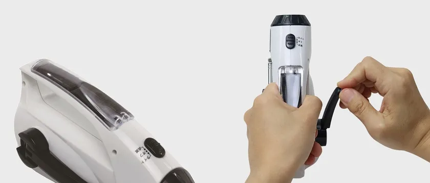 本体をしっかりつかみながら勢いよくハンドルを回しても、ハンドルが手に当たりにくいよう設計。ハンドルは左右どちらの回転方向にも対応しています。