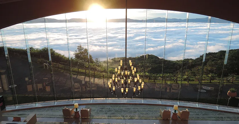 ロビーから眺める壮大な雲海は、当ホテルの象徴のひとつ。
