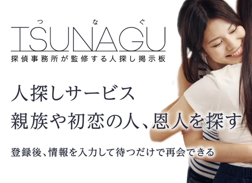 アイピーユー探偵事務所(所在地:東京都豊島区、運営:有限会社アイピーユー)は、ずっと会えなかった人・探している人が見つかる機会を作る無料サービスのウェブサイト「TSUNAGU・つなぐ」をサービス開始しており、10月1日(土)より初回登録料が無料となりました。